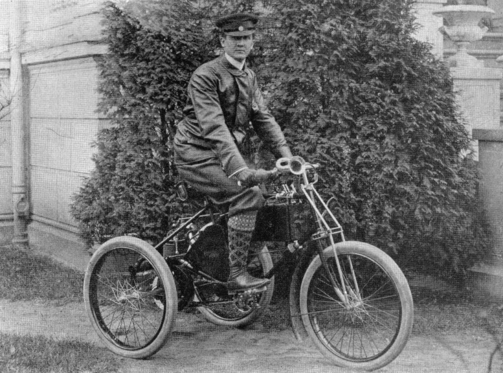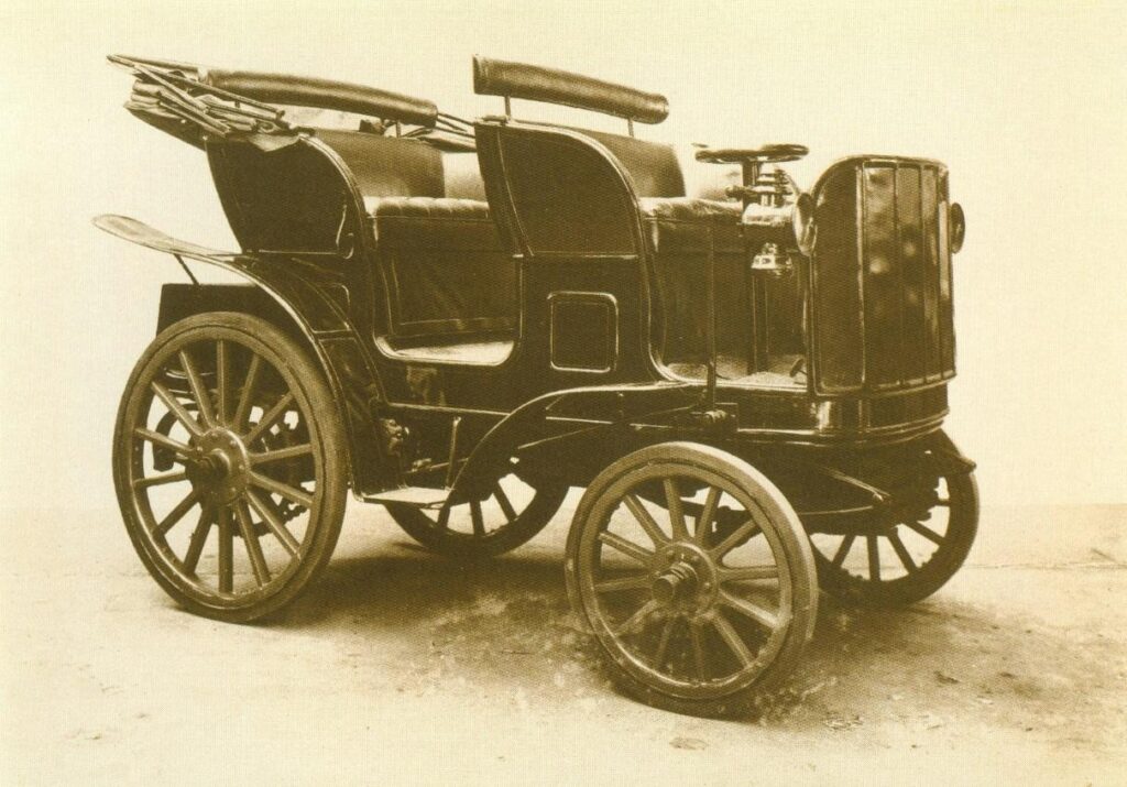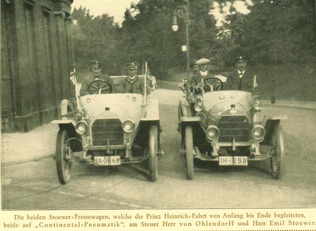 24-letni Emil Stoewer i 22-letni Bernhard Junior, dość wcześnie poznawszy uroki nowego wynalazku, jakim był pojazdy mechaniczne napędzane silnikiem, jęli przekonywać swego ojca do pomysłu rozpoczęcia budowy pojazdów mechanicznych na bazie rowerów, znanych im doskonale konstrukcji produkowanych w firmie Stoewer. Bracia rozpoczęli pierwsze próby i eksperymenty związane z projektem i konstrukcją swojego pierwszego oryginalnego pojazdu, który miał ramę z własnej fabryki rowerów i został zaopatrzony w francuski silnik (240 cm3) firmy De Dion – Bouton.