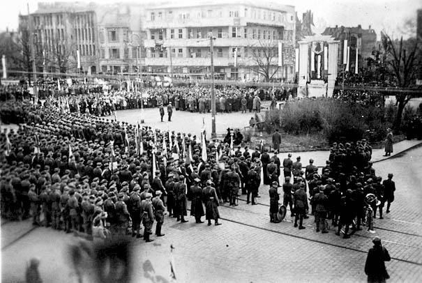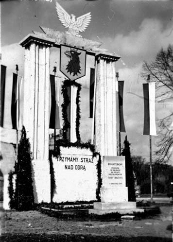 Uroczystości 13 kwietnia rozpoczęły się na ówczesnym Pl. Teatralnym (dzisiaj jego część to Pl. Żołnierza Polskiego) ślubowaniem młodzieży, przemówieniami władz i odsłonięciem makiety planowanego w przyszłości pomnika. Założenie było interesujące: nad dwiema kolumnami umieszczono wizerunek orła, obok znak gryfa, a pod nim napis „Trzymamy straż nad Odrą” oraz tablicę „Bohaterom poległym w walkach na szlaku Bolesławowym Odry i Bałtyku 13.04.1946 r.”. Pomnik nigdy nie powstał, po kilku tygodniach makieta została rozebrana, a w 1950 r. w tym miejscu odsłonięto pomnik Wdzięczności dla Armii Radzieckiej.